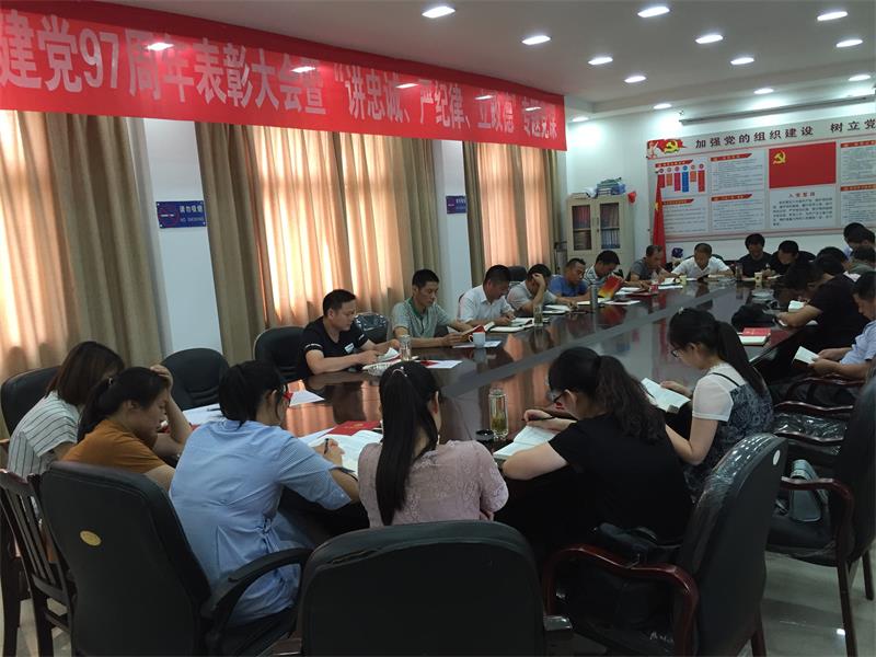 為隆重慶祝建黨97周年,增強黨組織的凝聚力、戰(zhàn)斗力和號召力,公司于7月10日下午在黨員活動室舉行慶祝建黨97周年“七一”表彰大會暨“講忠誠、嚴(yán)紀(jì)律、立政德”警示教育專題黨課,全體黨員、入黨積極分子參加會議,大會由支部書記汪樹林主持。會上,支部宣傳委員房春陽同志帶領(lǐng)全體成員重溫入黨誓詞,支部組織委員丁劍同志傳達(dá)公司支部文件《關(guān)于表彰公司黨支部優(yōu)秀共產(chǎn)黨員的決定》,并對劉敏、程丹彤、陳立群3個優(yōu)秀共產(chǎn)黨員進(jìn)行表彰獎勵。支部紀(jì)檢委員胡云軍同志帶領(lǐng)大家共同研讀了《中國共產(chǎn)黨章程》。