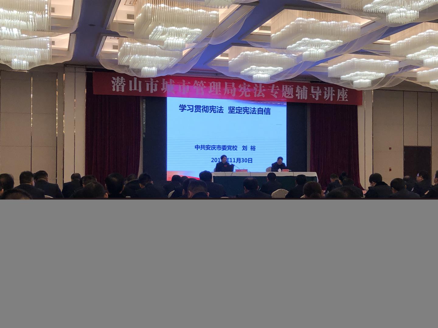 為迎接12月4日第六個國家憲法日,深入學習貫徹習近平總書記全面依法治國新理念新思想新戰(zhàn)略,11月30日,市城管局舉辦憲法專題輔導講座,公司支部全體黨員參加了培訓。