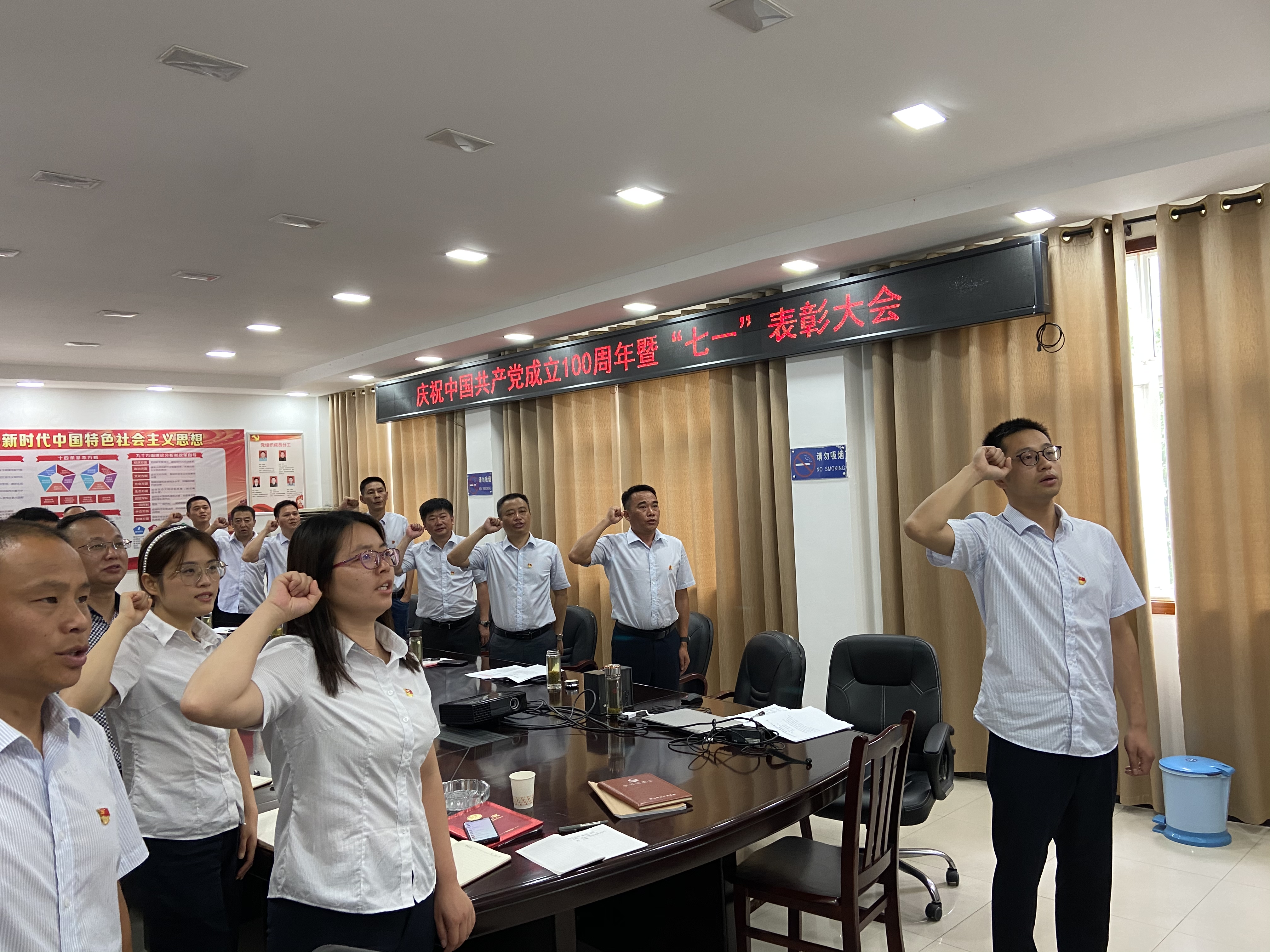 7月1日上午,公司支部召開(kāi)慶祝中國(guó)共產(chǎn)黨成立100周年暨“七一”表彰大會(huì)。全體黨員及入黨積極分子參加會(huì)議。會(huì)上,組織集體收看了慶祝中國(guó)共產(chǎn)黨成立100周年大會(huì)直播,大家認(rèn)真聆聽(tīng)習(xí)近平總書(shū)記重要講話,紛紛表示將不忘初心,以全新的面貌投入到接下來(lái)的工作中,為實(shí)現(xiàn)第二個(gè)百年目標(biāo)接續(xù)奮斗。隨后,全體與會(huì)人員重溫了入黨誓詞,表達(dá)砥礪奮進(jìn)的堅(jiān)定決心。大會(huì)宣讀了市直工委、局黨組及公司支部的表彰決定,對(duì)優(yōu)秀黨務(wù)工作者、優(yōu)秀共產(chǎn)黨員和支部?jī)?yōu)秀共產(chǎn)黨員進(jìn)行了表彰。會(huì)議要求,受表彰的黨員要珍惜榮譽(yù)、謙虛謹(jǐn)慎,戒驕戒躁、再接再厲,把榮譽(yù)作為新的起點(diǎn),以更高的標(biāo)準(zhǔn)嚴(yán)格要求自己,為推進(jìn)供水事業(yè)做出新的更大貢獻(xiàn)。大會(huì)還進(jìn)行了兩個(gè)歷史(即:改革開(kāi)放新時(shí)期歷史和黨的十八大以來(lái)的歷史)專題學(xué)習(xí)。