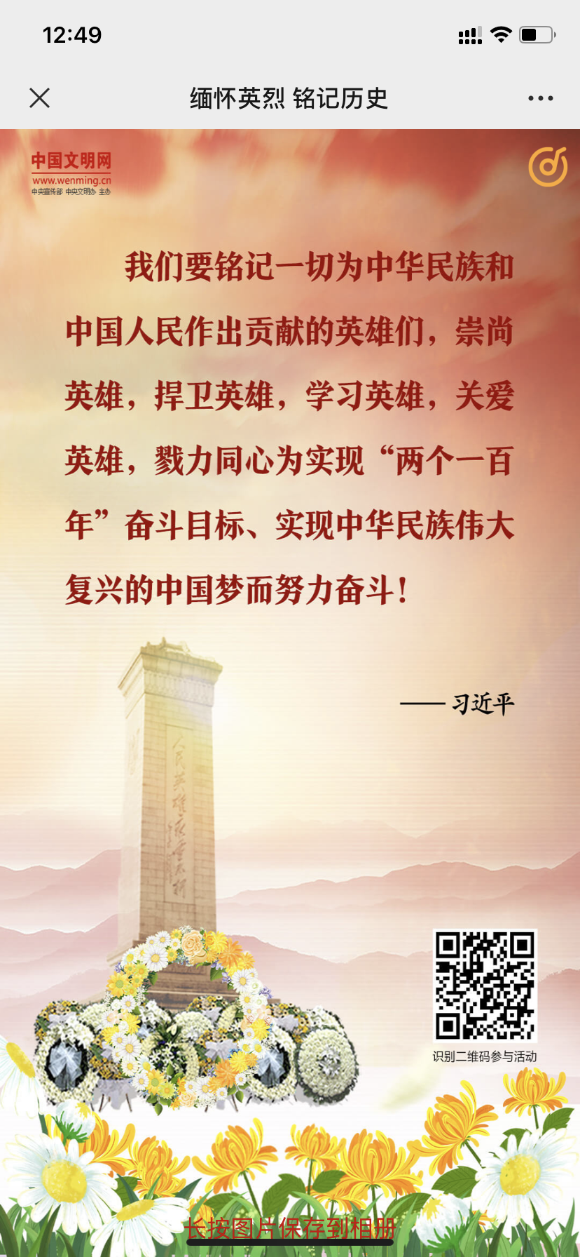 4月2日,為緬懷革命英烈、傳承紅色基因,公司黨支部組織全體黨員開(kāi)展網(wǎng)上“清明祭英烈 深化黨史學(xué)習(xí)教育”主題黨日活動(dòng)。通過(guò)中國(guó)文明網(wǎng)平臺(tái)進(jìn)行線上祭掃,為革命先烈網(wǎng)上獻(xiàn)花、留言寄語(yǔ),跟著先烈事跡學(xué)黨史,表達(dá)對(duì)先烈的敬仰和追思。清明祭英烈是學(xué)習(xí)黨史、堅(jiān)定理念信念,傳承革命先烈紅色精神的重要方式。通過(guò)此次情懷不變、溫度不減的線上祭掃活動(dòng),引導(dǎo)大家繼承革命先烈們的遺志,牢記先烈們堅(jiān)定的共產(chǎn)主義信念和國(guó)家富強(qiáng)的強(qiáng)烈愿望,把革命先烈們的事業(yè)薪火相傳,不斷發(fā)揚(yáng)光大。將學(xué)習(xí)先烈精神轉(zhuǎn)化為開(kāi)展工作的強(qiáng)大動(dòng)力,推動(dòng)黨史學(xué)習(xí)教育走深走實(shí)。