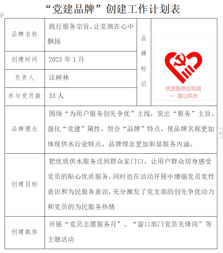 潛山市自來水公司黨建品牌公示