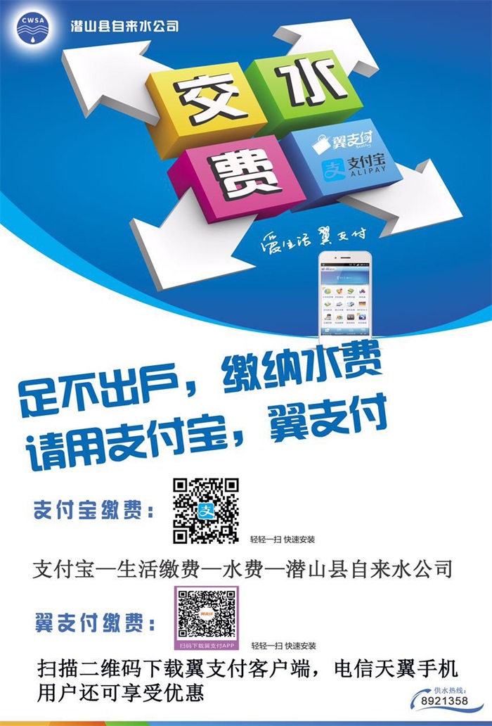一是拓展繳費方式。為方便用戶繳費,公司目前收費點達(dá)到9個(水費代收點),收費點位置布局更加合理,同時對老城區(qū)南門營業(yè)廳進(jìn)行升級改造,調(diào)配人員實行節(jié)假日正常上班。去年下半年,公司又依托互聯(lián)網(wǎng)技術(shù),開通翼支付、支付寶以及微信平臺繳費方式,在安慶市供水行業(yè)中率先使用網(wǎng)上繳費方式,真正實現(xiàn)了用戶足不出戶繳納水費。