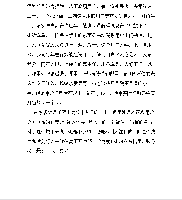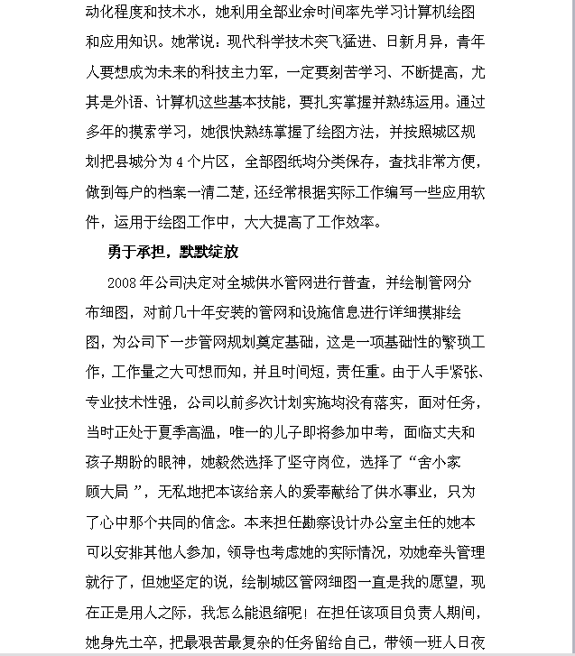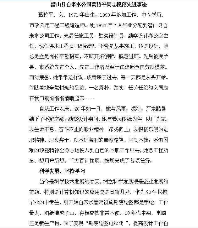 潛山縣自來水公司葛竹平同志模范先進(jìn)事跡