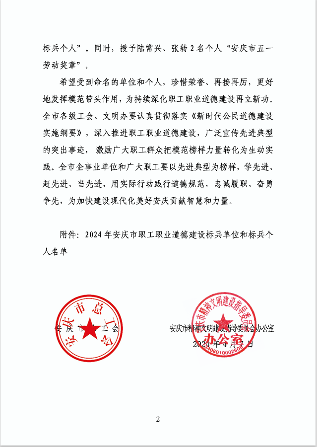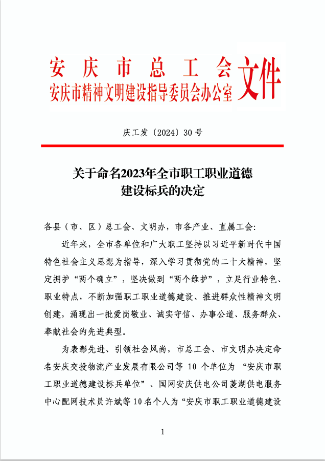 陳立群獲安慶市2023年職工職業(yè)道德建設(shè)標(biāo)兵