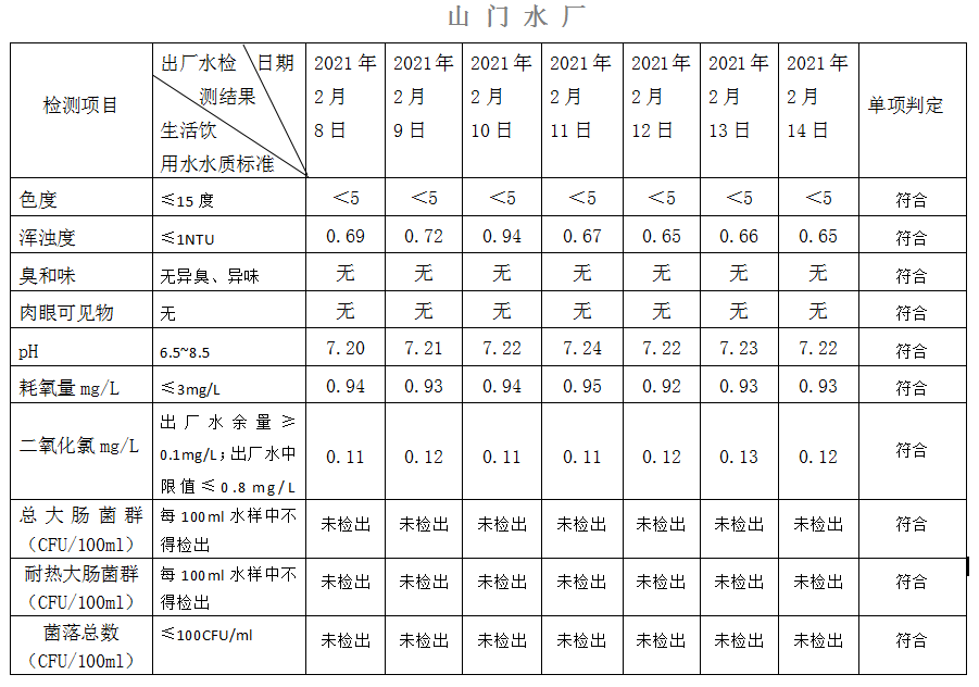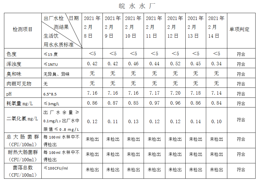 2021年2月8日-14日出廠水水質(zhì)日檢指標公告