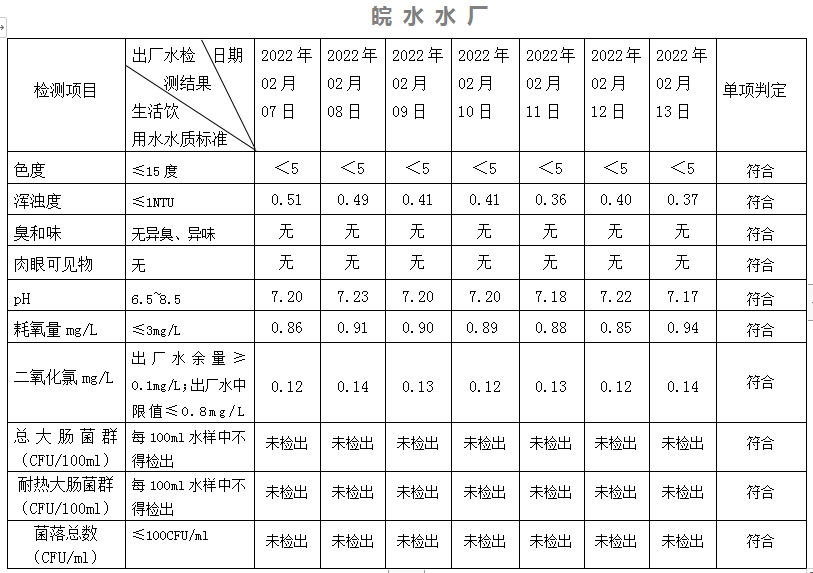 2022年2月7日-13日出廠水水質(zhì)日檢指標(biāo)公告