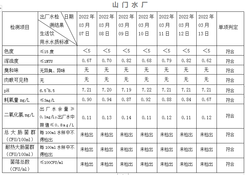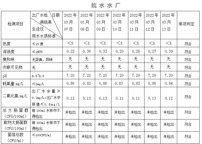 2022年3月7日-13日出廠水水質(zhì)日檢指標(biāo)公告