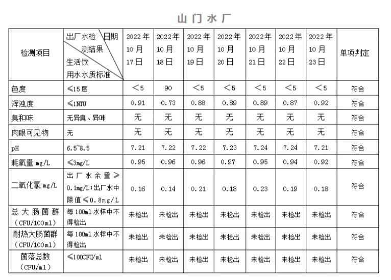2022年10月17日-10月23日出廠水水質(zhì)日檢指標(biāo)公告