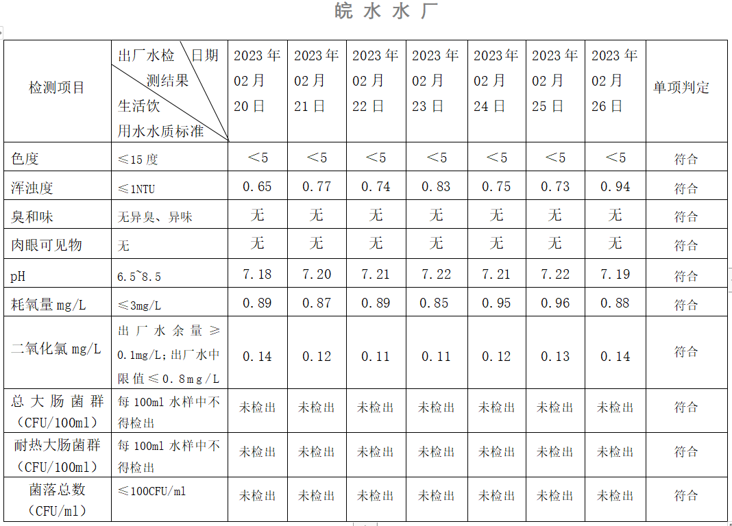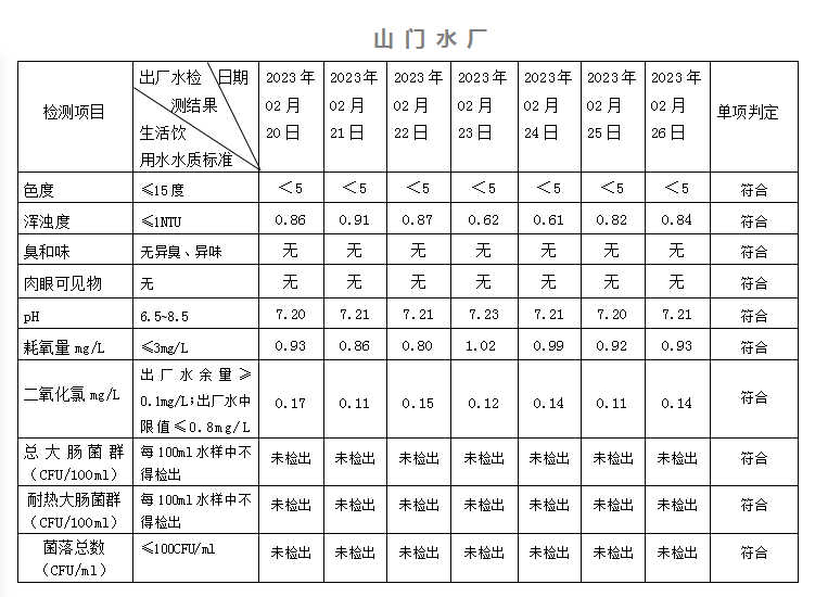 2023年02月20日-02月26日出廠水水質(zhì)日檢指標公告