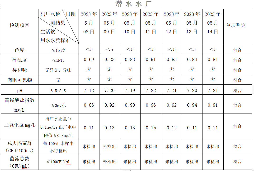 2023年05月08日-05月14日出廠水水質(zhì)日檢指標公告