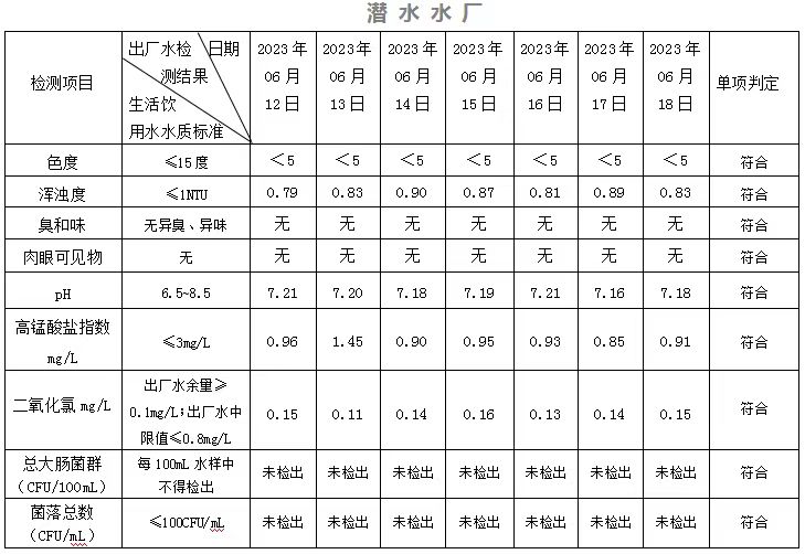 2023年06月12日-06月18日出廠水水質(zhì)日檢指標(biāo)公告