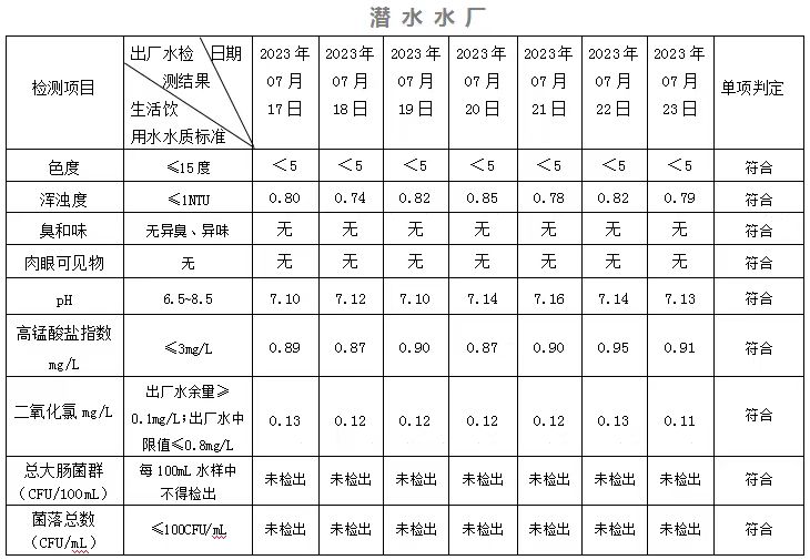 2023年07月17日-07月23日出廠水水質(zhì)日檢指標(biāo)公告