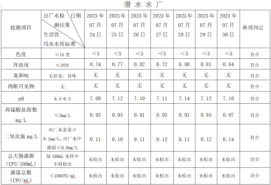 2023年07月24日-07月30日出廠水水質(zhì)日檢指標(biāo)公告