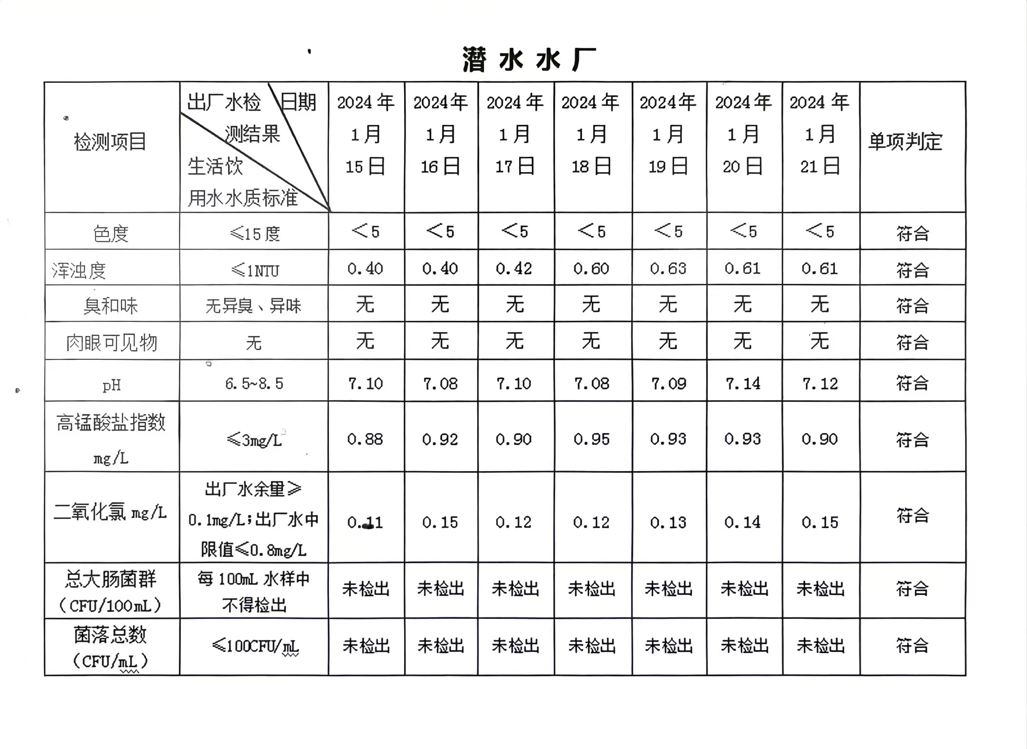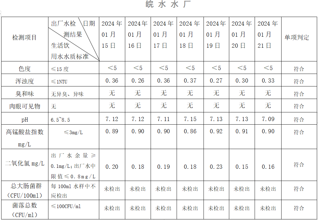 2024年01月15日-01月21日出廠水水質日檢指標公告