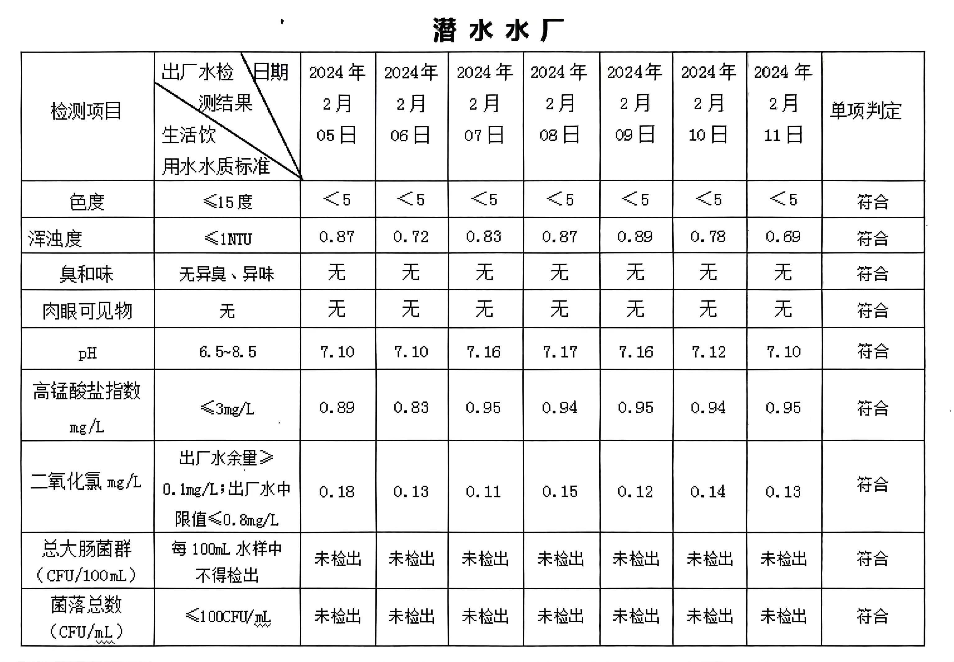 2024年02月05日-02月11日出廠水水質(zhì)日檢指標(biāo)公告