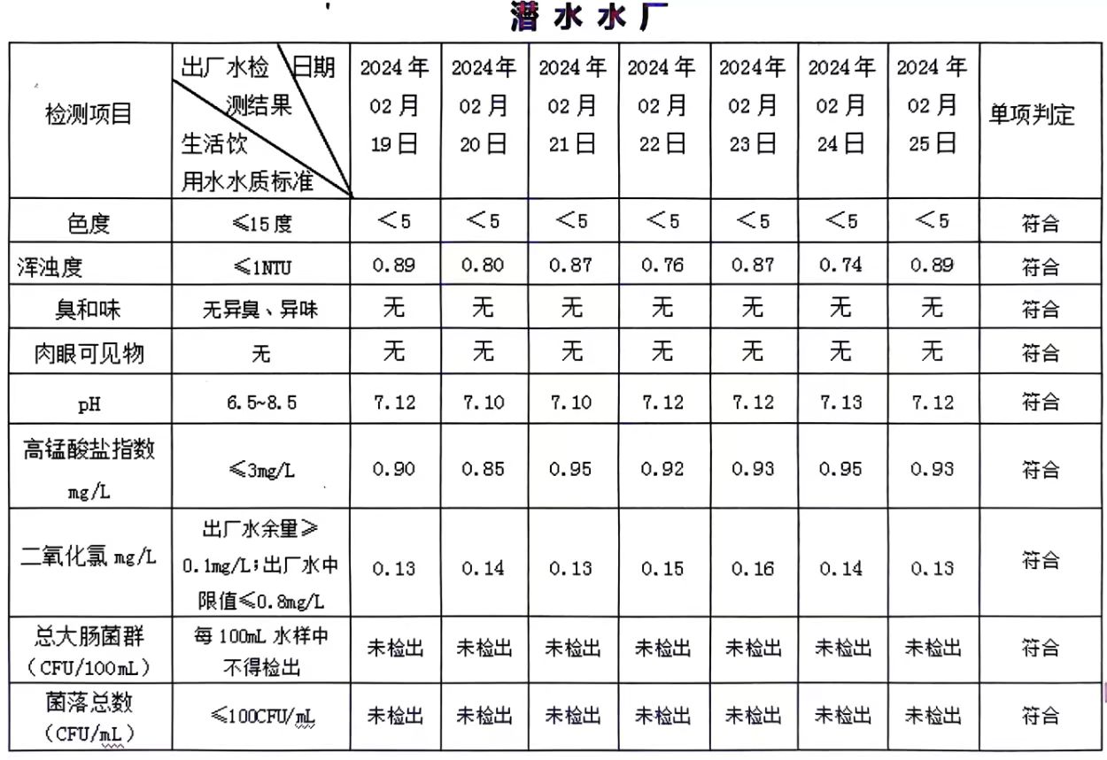 2024年02月19日-02月25日出廠水水質(zhì)日檢指標(biāo)公告