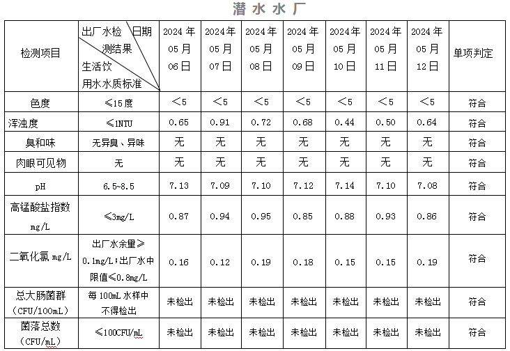 2024年05月06日-05月12日出廠水水質(zhì)日檢指標公告
