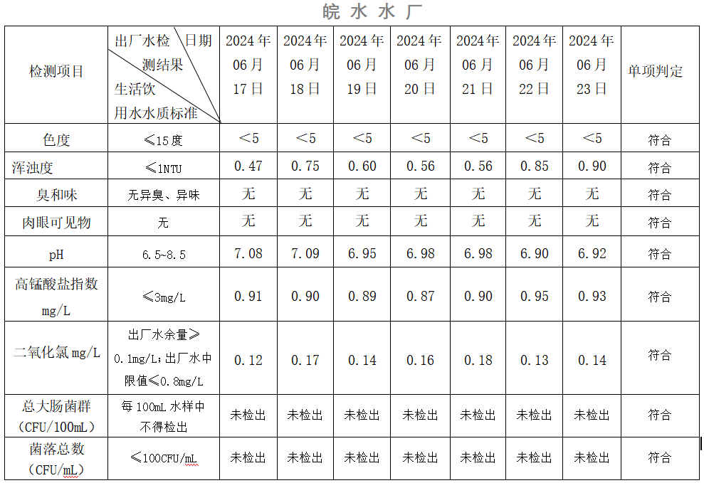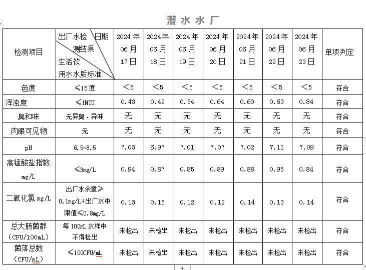 2024年06月17日-06月23日出廠水水質日檢指標公告