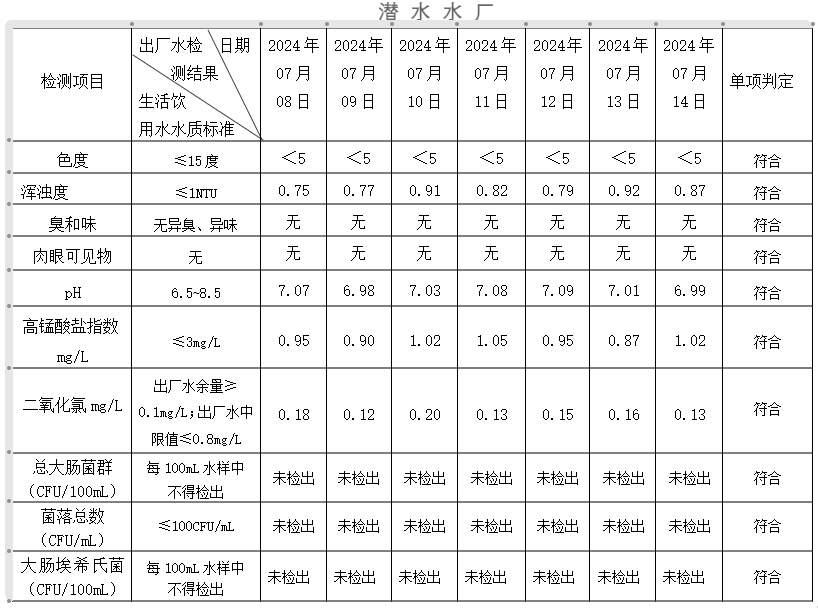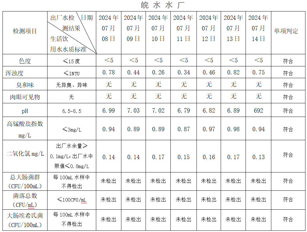 2024年07月08日-07月14日出廠水水質(zhì)日檢指標(biāo)公告