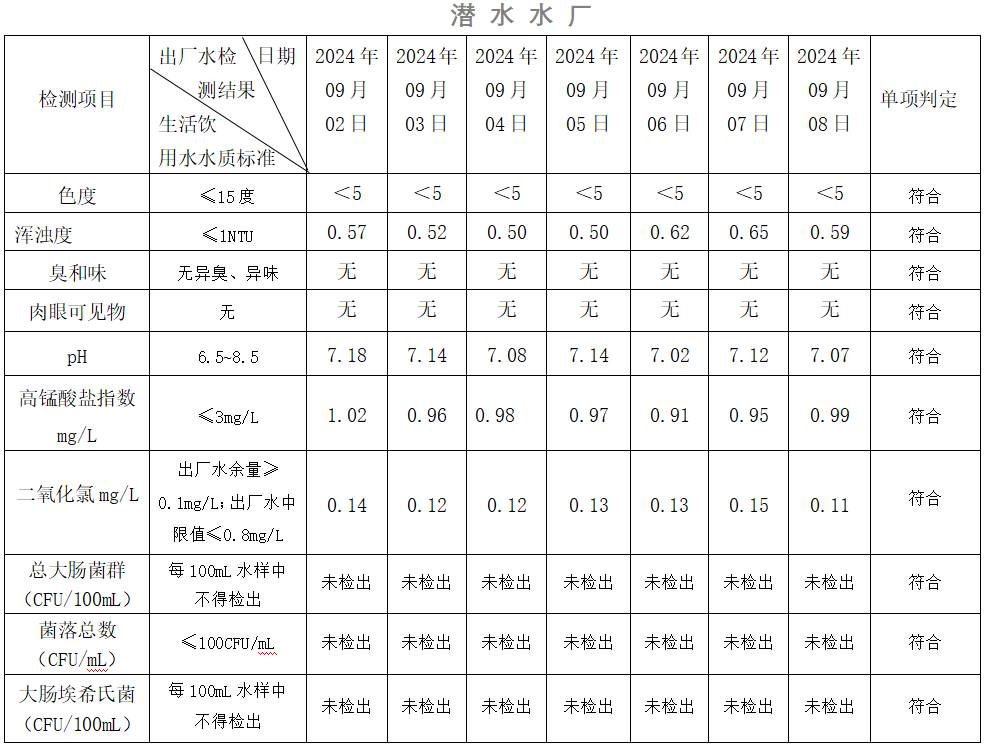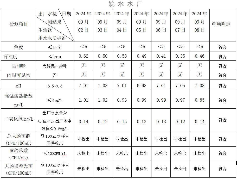 2024年09月02日-09月08日出廠水水質(zhì)日檢指標(biāo)公告