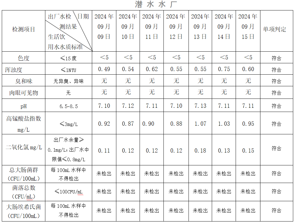 2024年09月09日-09月15日出廠水水質(zhì)日檢指標(biāo)公告