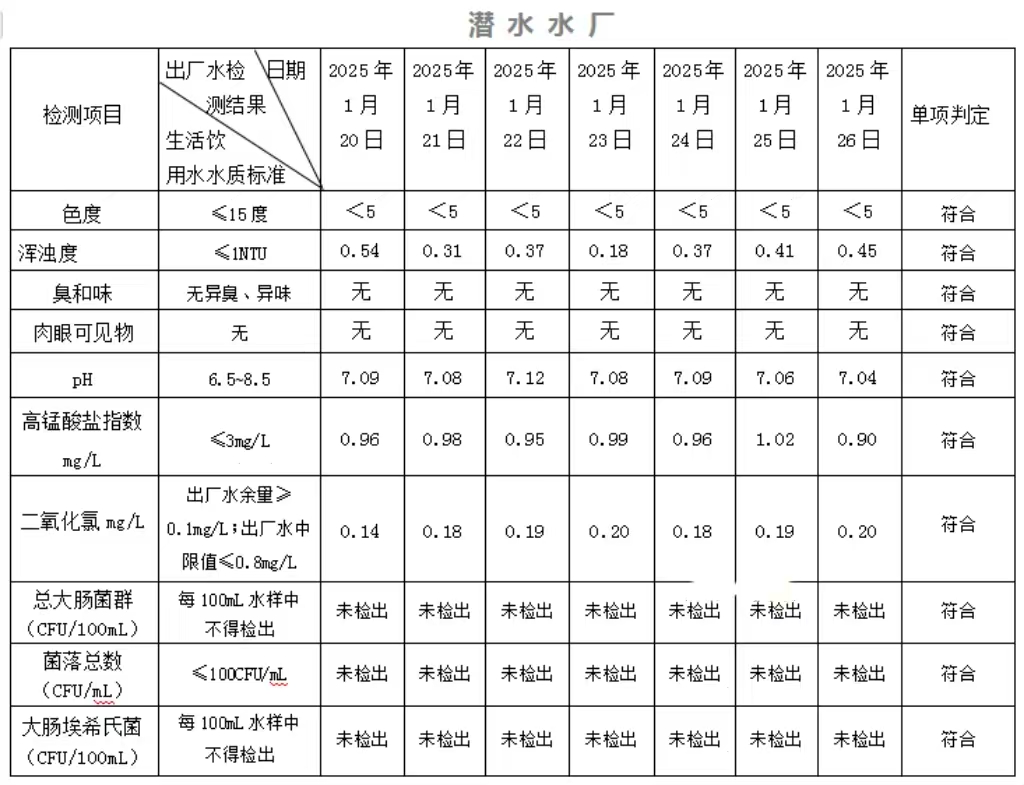 2025年01月20日-01月26日出廠水水質(zhì)日檢指標(biāo)公告
