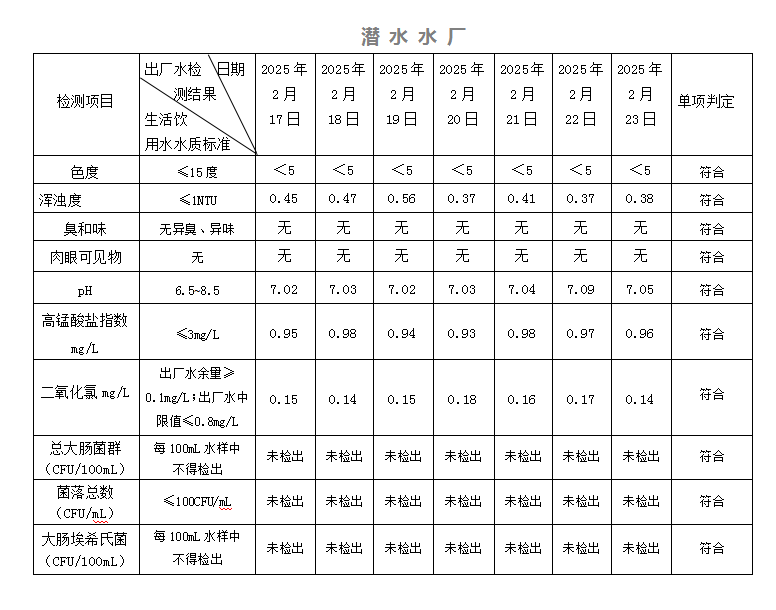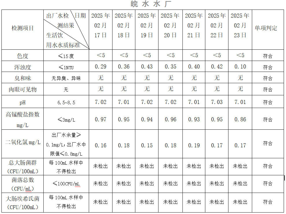 2025年02月17日-02月23日出廠水水質(zhì)日檢指標(biāo)公告