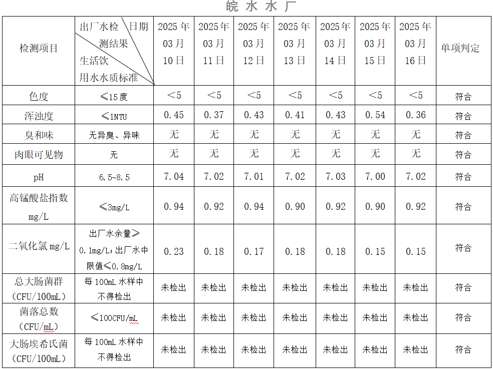 2025年03月10日-03月16日出廠水水質(zhì)日檢指標(biāo)公告