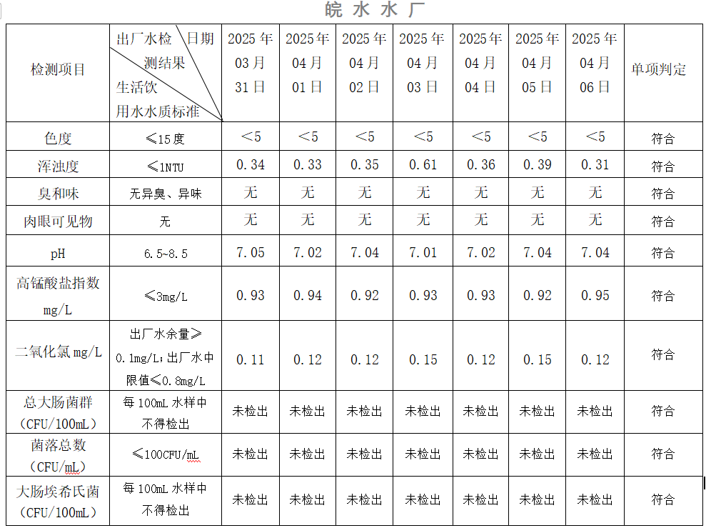 2025年03月31日-04月06日出廠水水質日檢指標公告
