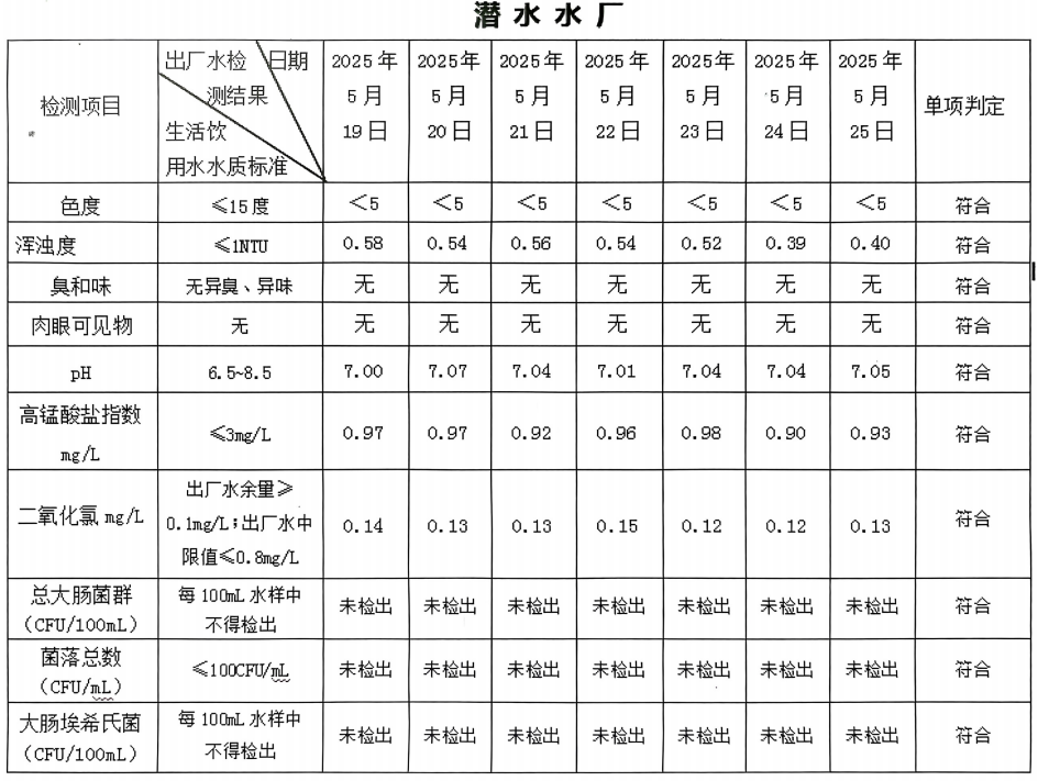2025年05月19日-05月25日出廠水水質(zhì)日檢指標(biāo)公告
