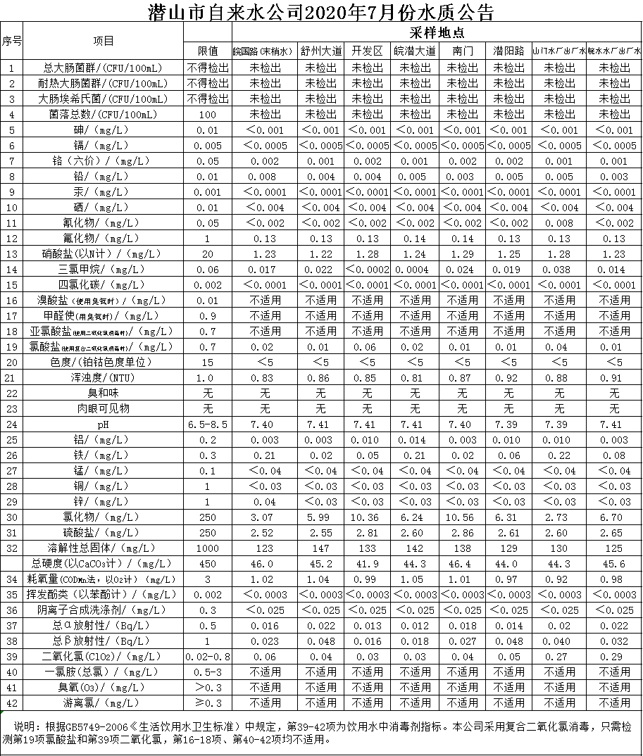 2020年7月份水質(zhì)公告