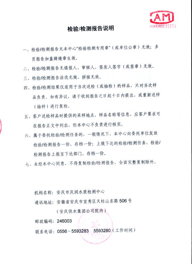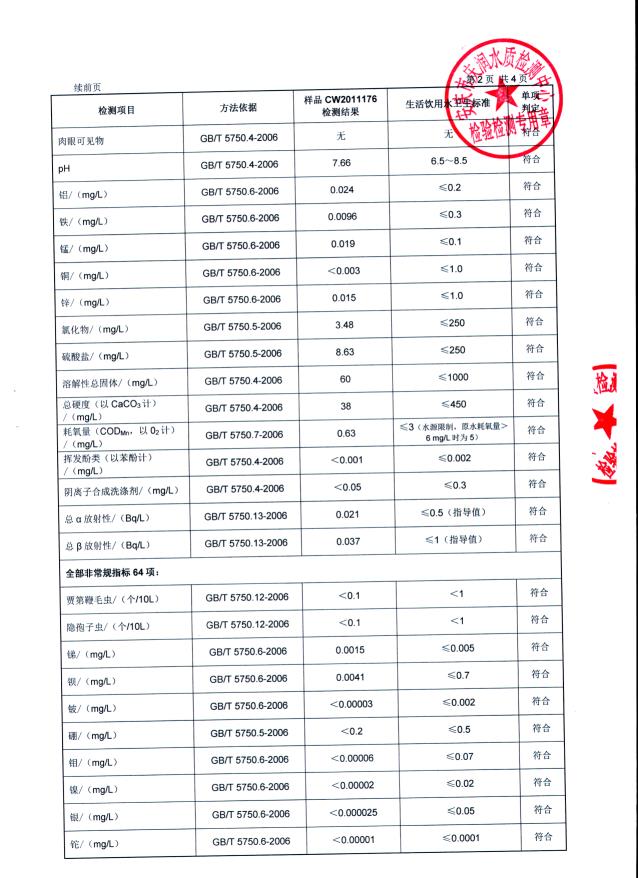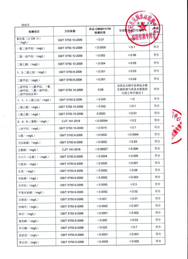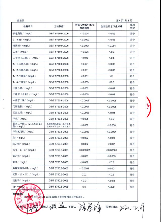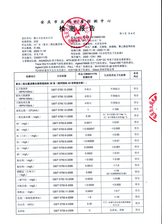 2020年下半年水質(zhì)106項(xiàng)全分析公告