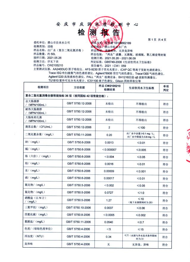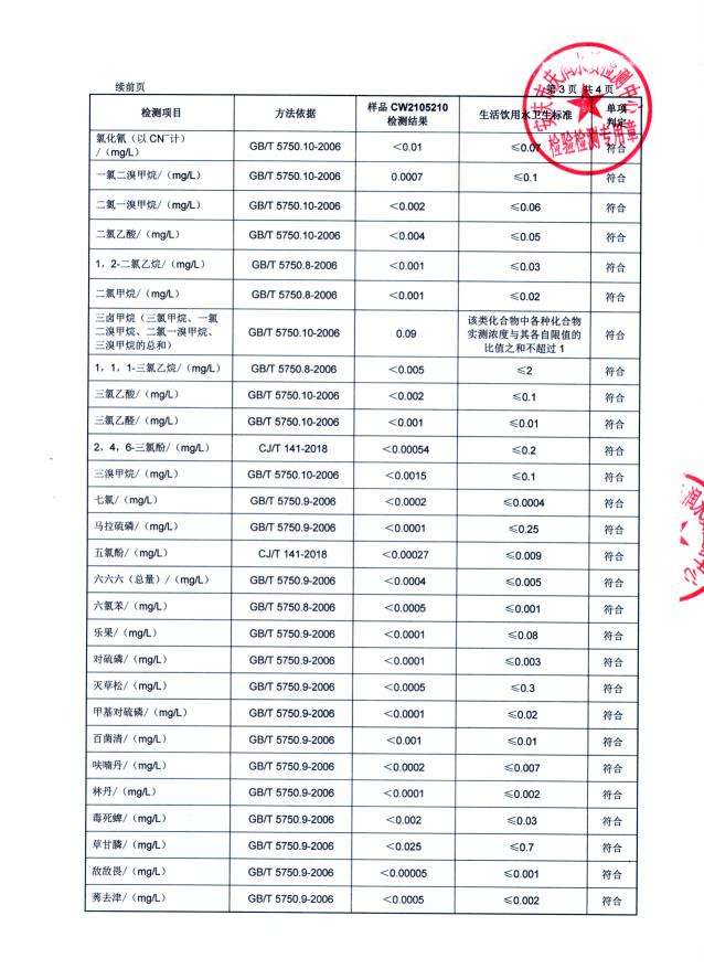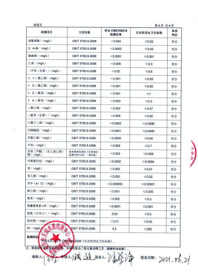 2021年上半年水質(zhì)106項(xiàng)檢測(cè)報(bào)告