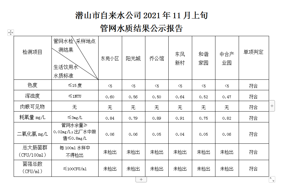 2021年11月上旬管網(wǎng)水質(zhì)結(jié)果公示報(bào)告