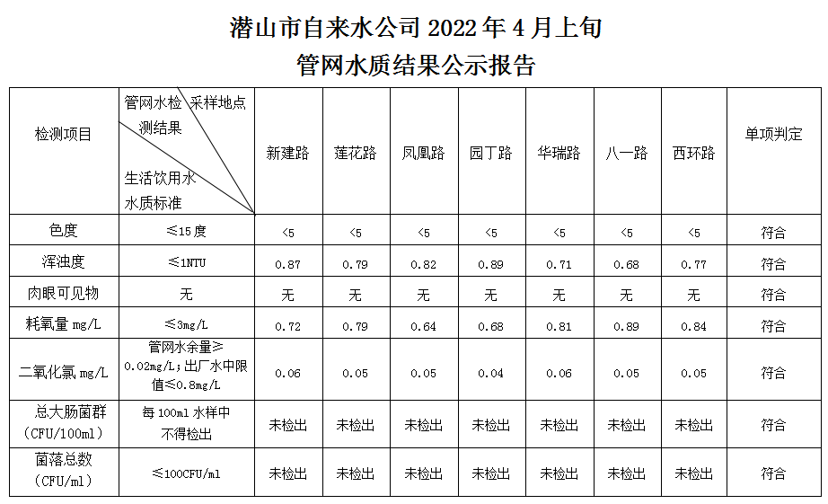 2022年4月上旬管網(wǎng)水質(zhì)結(jié)果公示報(bào)告