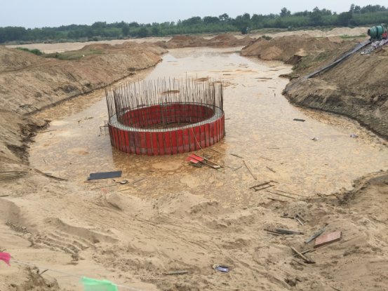 皖水水廠(備用水源)取水工程正在進(jìn)行關(guān)鍵節(jié)點(diǎn)(1號(hào)取水井)施工,5月18日夜間上游2座水電站同時(shí)發(fā)電,由于皖河河道狹窄、平緩,上游大量流沙向下游沖擊,沖破取水井施工圍堰,導(dǎo)致施工基坑淹沒,嚴(yán)重影響了工程工期。出現(xiàn)該狀況后,業(yè)主單位和公司高度重視,連夜會(huì)同監(jiān)理單位、工程項(xiàng)目部制訂應(yīng)急方案,積極采取措施,通過4晝夜的努力,共排水約39000m³,泥沙5000m³,現(xiàn)施工現(xiàn)場(chǎng)基本恢復(fù)。此次突發(fā)事件使施工機(jī)械設(shè)備和材料遭到不同程度的損毀,給項(xiàng)目帶來了不小的損失,通過這次事件,項(xiàng)目部人員積極吸取經(jīng)驗(yàn)教訓(xùn),在接下來的施工中把握關(guān)鍵節(jié)點(diǎn),倒排工期,力爭(zhēng)在汛期前完成施工任務(wù)。
