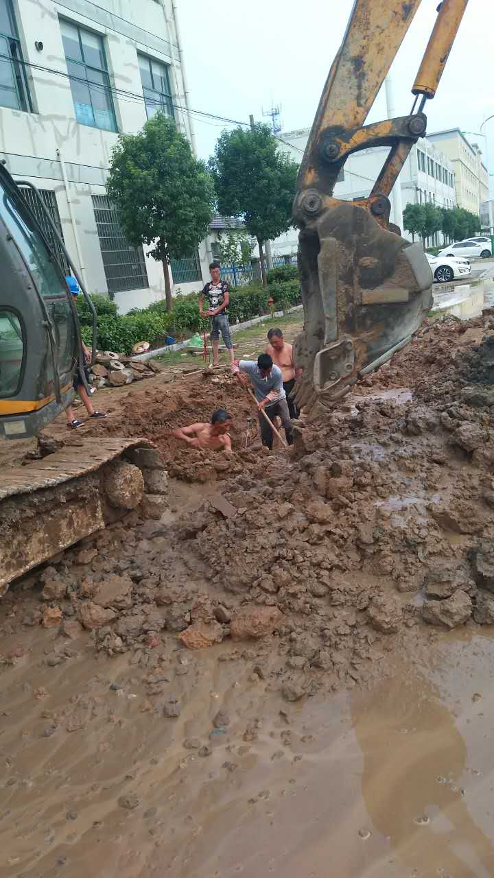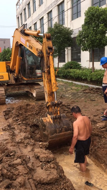 8月6日下午2時許,經(jīng)濟開發(fā)區(qū)丹霞路衛(wèi)康制藥公司對面DN300 主管爆裂造成開發(fā)區(qū)部分區(qū)域停水。公司搶修中心在接到搶修電話后立即向公司周末帶班領導匯報,并安排搶修人員與物資第一時間到達現(xiàn)場,進行停水搶修。為提高搶修工作效率,及時恢復通水,搶修人員采取機械與人工相結合的方式進行開挖。搶修人員頭頂烈日,加班加點展開挖坑、排水、清淤、修復、回填等工作,經(jīng)過近5個小時的搶修,于7:30左右搶修完畢,恢復供水,保障了停水區(qū)域用戶的用水安全。