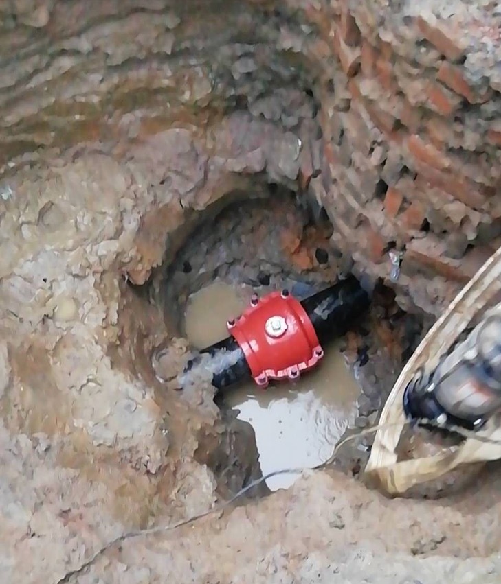 12月26日晚,公司測漏小組巡查員在開展供水管道專項測漏工作中發(fā)現(xiàn)到南岳路億龍新區(qū)路口DN150鑄鐵管大頭處漏水,據(jù)探測儀、聽音桿等設(shè)備顯示漏水點較深,不宜夜晚施工。為避免影響周邊居民休息,公司決定安排人員于次日早晨開工。現(xiàn)場作業(yè)時發(fā)現(xiàn),漏水點處需開挖一個接近3米深的基坑,難度非常大,經(jīng)過搶修隊有經(jīng)驗的師傅加班加點的工作,漏水點已于當(dāng)天傍晚搶修完成,減少了水資源的損失,提升了供水壓力。