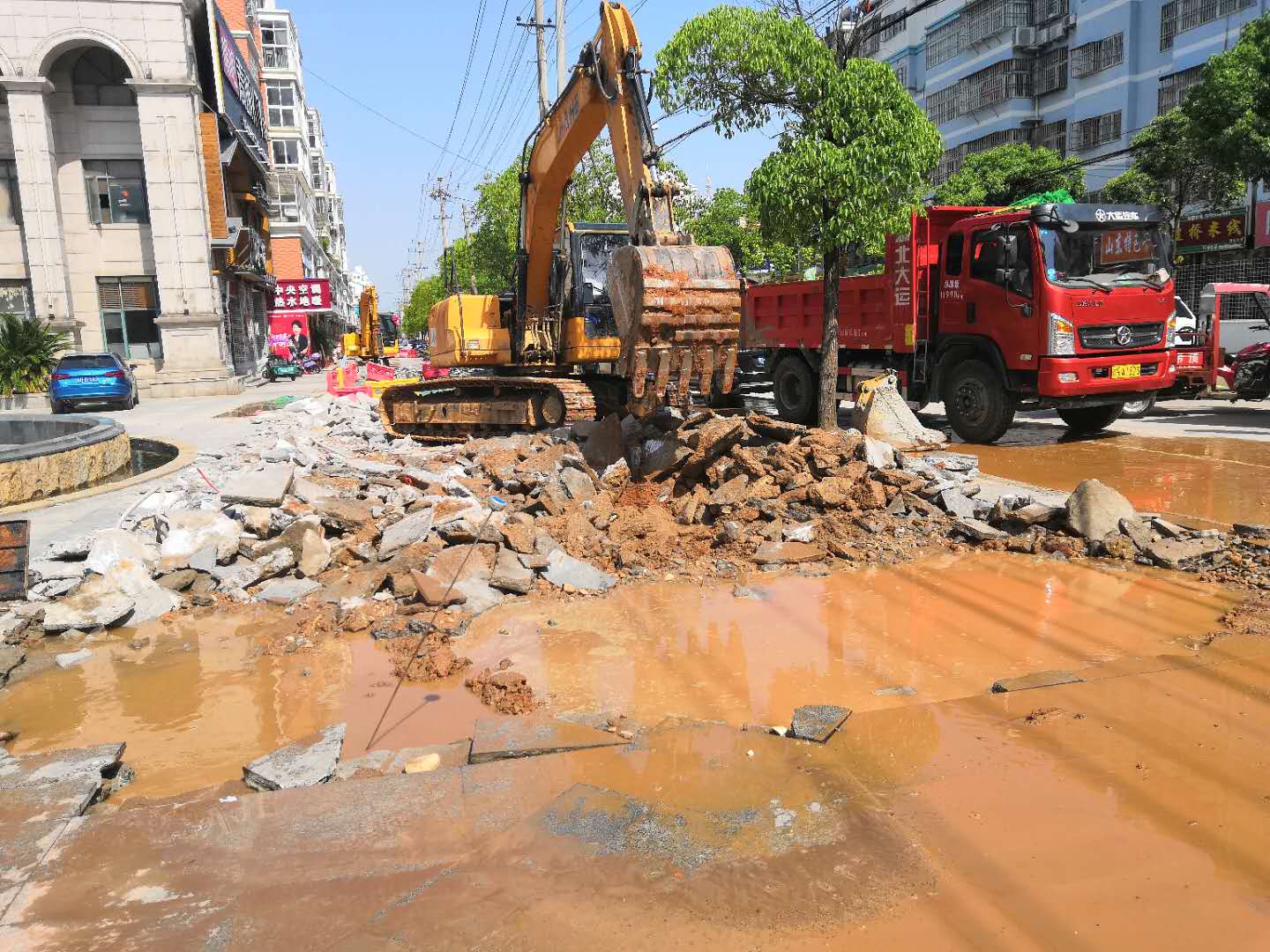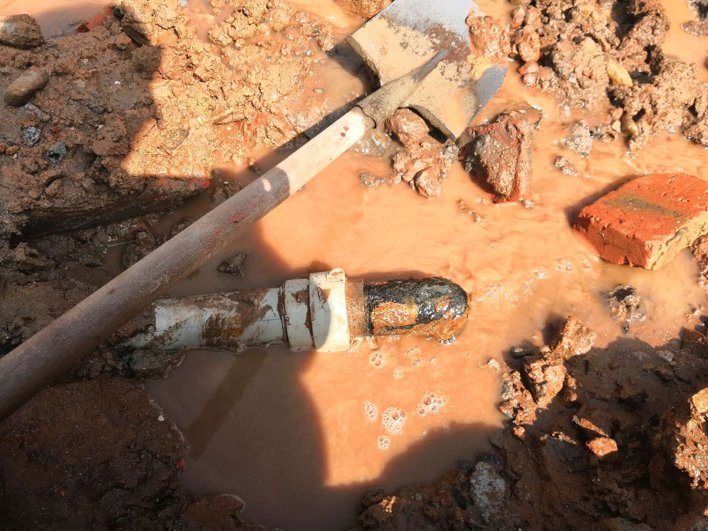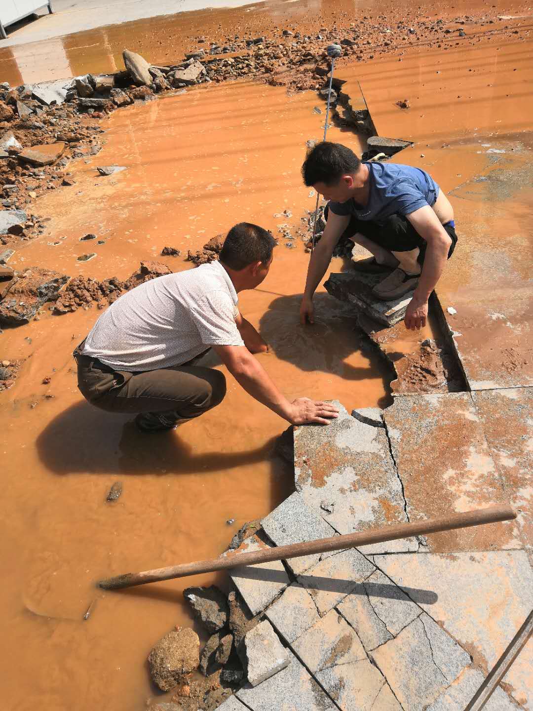 5月27日下午,潛陽路(陽光城路段)供水管道破裂,公司搶修隊在接到電話后第一時間趕到現(xiàn)場開展搶修工作。經現(xiàn)場勘查,由于近期潛陽路(陽光城小區(qū)門口)進行道路施工,確定系DN63PPR管及DN50鍍鋅管均被挖破,路面積水嚴重,必須停水搶修。該處處于交通要道,又在小區(qū)門口,車流人流都較大,停水搶修迫在眉睫。為減少對居民用水的影響,搶修人員告知周邊用戶做好儲水準備,并現(xiàn)場研究制定搶修方案,力爭取在兩個小時內恢復通水。