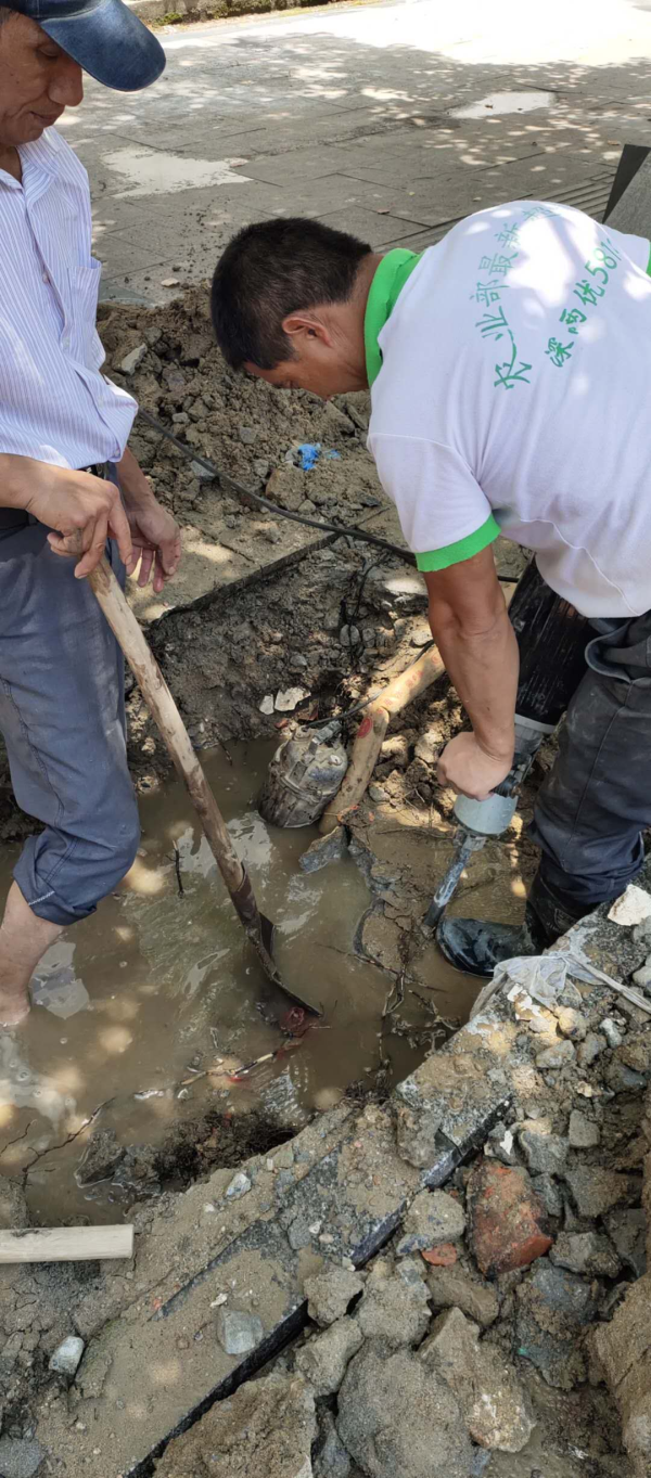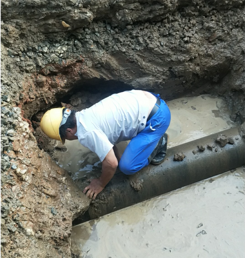 6月14日,天柱路公安駕校門口PE200、丹霞路PE300兩處管道破裂,造成相關涉及區(qū)域短暫停水。公司搶修中心在接到搶修電話后立即安排搶修人員第一時間到達現(xiàn)場,進行停水搶修。由于正值中考期間,搶修人員特意避開用水高峰期進行搶修。為提高搶修工作效率,及時恢復通水,搶修人員加派人手,并采取機械與人工相結合的方式進行開挖。搶修人員加班加點展開挖坑、排水、清淤、修復、回填等工作,很快恢復了供水,保障了用戶的用水安全。