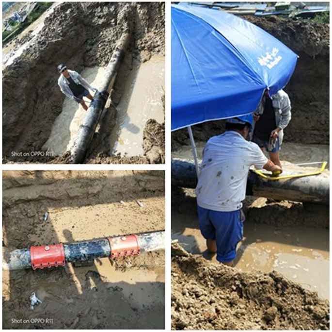 8月21日,因梅河路不當(dāng)施工導(dǎo)致DN300主管破裂。根據(jù)現(xiàn)場(chǎng)情況來(lái)看,該處破損管道受材質(zhì)影響,管道難鋸斷,哈夫節(jié)卡不起來(lái),搶修起來(lái)十分困難。為了盡快恢復(fù)通水,搶修隊(duì)長(zhǎng)與多名經(jīng)驗(yàn)豐富的隊(duì)員頂著烈日、輪班作業(yè),經(jīng)過(guò)了近四個(gè)小時(shí)的合力操作,終于將爆裂處搶修完成,恢復(fù)通水。在完成搶修后,分管搶修工作的領(lǐng)導(dǎo)也對(duì)現(xiàn)場(chǎng)回填情況提出要求:一是要安排專人在場(chǎng)監(jiān)督,防止尖銳雜物損壞管道;二是注意現(xiàn)場(chǎng)安全的情況。