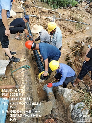 因城區(qū)排水系統(tǒng)比較完善,險情較輕,此次暴雨真正受難的還是我市農村地區(qū)。此次強降雨,水吼、黃鋪、龍?zhí)?、痘?個鄉(xiāng)鎮(zhèn)3小時(5時-8時)降雨量超過100mm,最大降雨量天柱山205.7mm。地質災害多點頻發(fā),造成供水管道多處破損,據(jù)不完全統(tǒng)計,我市14個鄉(xiāng)鎮(zhèn)供水站供水區(qū)域受影響,管網(wǎng)損壞點達100多處,涉及30多個村莊7000多人無法正常用水。為保障正常供水,自來水公司鄉(xiāng)鎮(zhèn)供水站工作人員顧不得周末休息,30日清晨全員上崗,在暴雨中一往無前,搶修損壞管道。面對災情,搶修人員不等不靠,采取多種措施進行搶修,管網(wǎng)破損,維修人員來不及排污就奮不顧身光著膀子跳進污水中進行搶修;管道被沖跑,就用繩子拉、用肩扛,幾百斤的管道在搶修人員肩膀上留下了深深斑駁的痕跡。有些工作人員由于站在污水中過久,腳泡重了,腿泡脹了,依然堅持工作,舍小家為大家,就是為了能快點保障居民生活用水這個小目標。