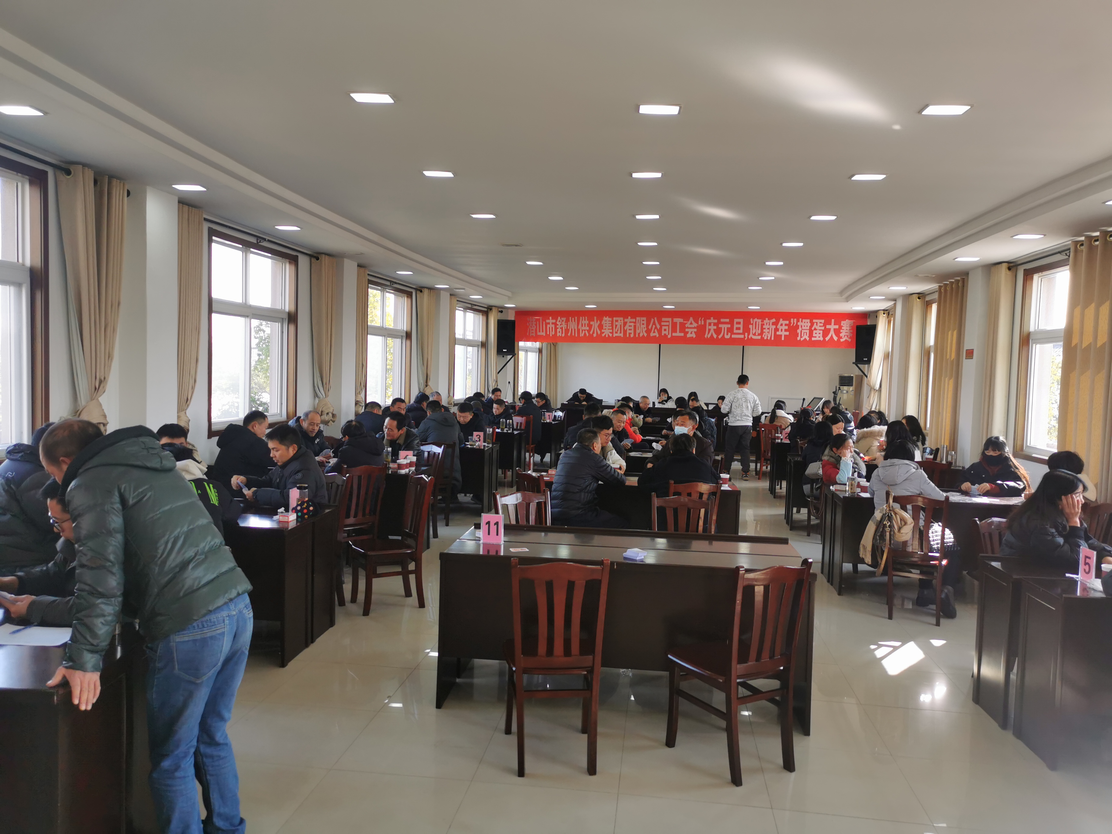 為豐富職工精神文化生活、大力營(yíng)造和諧的工作氛圍,12月24日,公司工會(huì)經(jīng)過(guò)精心準(zhǔn)備,利用周末時(shí)間組織開(kāi)展了2023年“供水杯”摜蛋比賽活動(dòng)。活動(dòng)得到了職工的熱烈響應(yīng),大家積極報(bào)名踴躍參與。上午8點(diǎn),摜蛋比賽拉開(kāi)了序幕,比賽分為男子組、女子組,職工們自由組合進(jìn)行循環(huán)淘汰賽的角逐。賽場(chǎng)上氣氛活躍,參賽搭檔通力合作、默契配合,充分施展自己的牌技爭(zhēng)鋒角逐。經(jīng)過(guò)數(shù)輪較量,最終房春陽(yáng)、彭俊獲得男子組第一名,葉大喬、江環(huán)獲得女子組第一名。