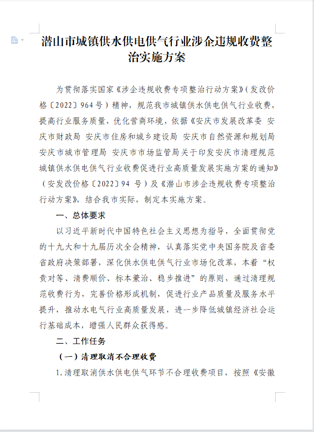 潛山市清理規(guī)范城鎮(zhèn)供水行業(yè)收費