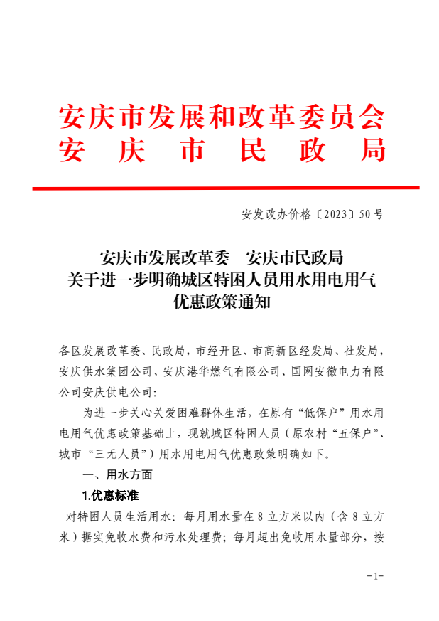 城區(qū)特困人員用水優(yōu)惠政策