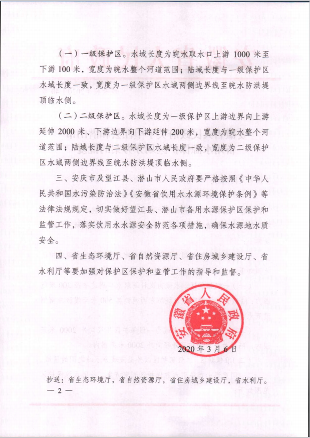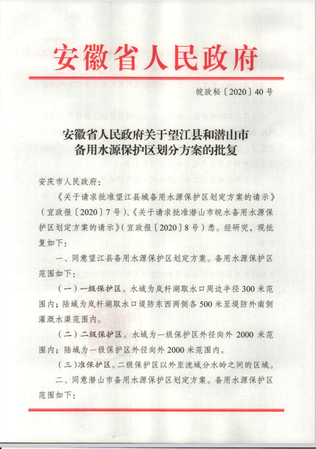 關(guān)于潛山市備用水源保護區(qū)劃分方案的批復(fù)